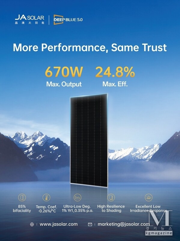 [ 경기뉴스매거진 ] 베이징 2026년 1월 26일 -- 신뢰받는 글로벌 녹색 에너지 파트너인 JA 솔라(JA Solar)가 유틸리티, 상업 및 산업용(C&I), 주거용 시장 전반에 걸쳐 DeepBlue 5.0 모듈의 글로벌 공급을 빠르게 확대하고 있다. 이는 최근 변동성이 커진 글로벌 태양광 시장에서 개발사들이 장기적인 가치, 투자 신뢰성 및 리스크 완화를 점차 중요하게 고려하고 있는 추세를 반영한 것이다.