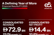 • 연결 순이익 144억 디르함으로 전년 대비 34% 증가• 아시아, 아프리카, 중동, 중앙 및 동유럽 전역에서 가입자 수 2억 4470만 명으로 증가• 연간 주당 배당금 90필스… 2026년 95필스로 증가 예정• 하템 도위다르 그룹 최고경영자, 6년간의 임기 마치고 3월 말 퇴임• 마수드 M. 샤리프 마흐무드, 4월 1일부터 이앤드 UAE 최고경영자와 겸임해 그룹 최고경영자 취임 아부다비, 아랍에미리트, 2026년 2월 25일 -- 이앤드(e&)가 2025년 사상 최대 실적을 달성하며 전년 대비 23.1% 증가한 수치인 연결 매출 729억 디르함을 기록했다고 발표했다. 연결 순이익은 144억 디르함으로 33.6% 증가했으며, 이는 전 사업 부문에서의 성과 개선에 힘입은 것이다. 연결 EBITDA는 전년 대비 21.1% 증가한 320억 디르함을 기록했다. 이앤드 UAE는 견조한 성장세를 이어가며 가입자 수가 1630만 명을 넘어 전년 대비 8.4% 증가했다. 그룹 전체 가입자 수는 2억 4470만 명으로 확대돼 2024년 대비 31.3% 증가했다. 2025 회계연도 주요