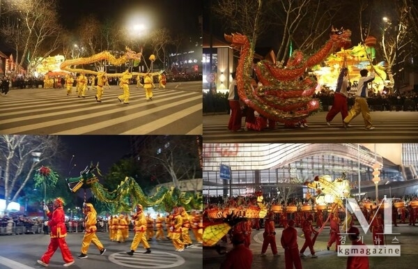 행사는 용의 눈에 점을 찍어 생명을 불어넣는 전통 의식인 점안식으로 시작됐으며, 이어 역사적인 거리 일대를 행진하는 퍼레이드가 진행됐다. 각 공연단은 고성의 거리 곳곳을 돌며 관람객들을 위해 원소절을 기념하는 전통 용춤 공연을 펼쳤다. 퍼레이드 경로 곳곳에서는 난공 노인, 취저우 삼괴, 양경 거리 순찰 등 지역을 대표하는 민속 캐릭터와 공연을 포함한 다양한 전통 공연도 함께 진행돼 지역 문화유산의 독특한 요소를 보여주었다.