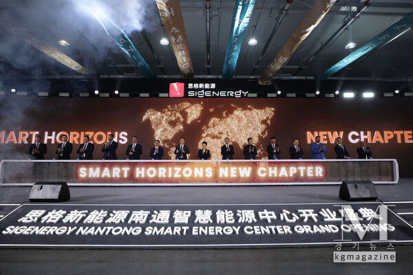 [ 경기뉴스매거진 ] 난퉁, 중국 2026년 3월 14일 -- 시그에너지(Sigenergy)가 13일 중국 장쑤성 난퉁에서 시그에너지 난퉁 스마트 에너지 센터(Sigenergy Nantong Smart Energy Center)를 공식 개소하며 글로벌 발전에 새로운 이정표를 세웠다. 이번 행사에는 전 세계 주요 유통업체 및 설치 파트너 창립자, 최고경영자(CEO), 고위 임원 등을 포함해 50여 개 국가 및 지역에서 약 2000명의 귀빈이 참석하면서 시그에너지의 높아지는 글로벌 영향력과 혁신 리더십이 입증됐다.